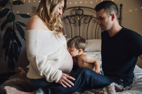 Stunning right? I know! haha So, not only did we get to shoot in the comfort of her own home with the perfect background she had envisioned to show case her beautiful little growing inside. We also got to showcase her beautiful family and the love they have for each other. I honestly could not have pictured this day going any better! Not to mention it was -35 outside the day we shot haha A warm in home snuggle session was definitely the way to go!